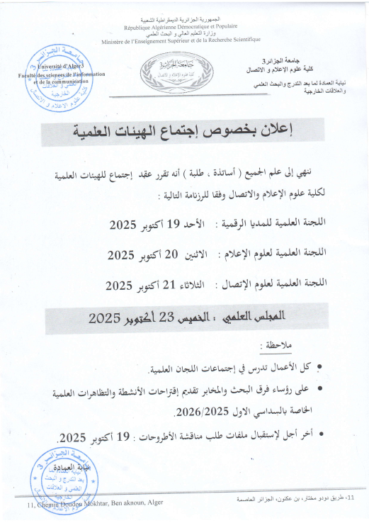 إعلان بانعقاد اجتماعات الهيئات العلمية للكلية 14 أكتوبر 2025 أخبار الكلـــية التعليقات على إعلان بانعقاد اجتماعات الهيئات العلمية للكلية مغلقة 7 زيارة شاركها شاركها