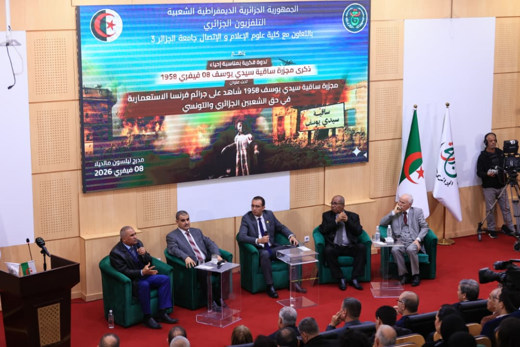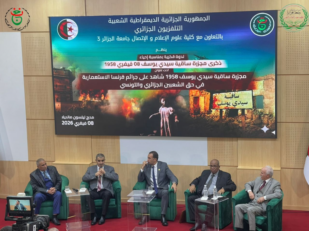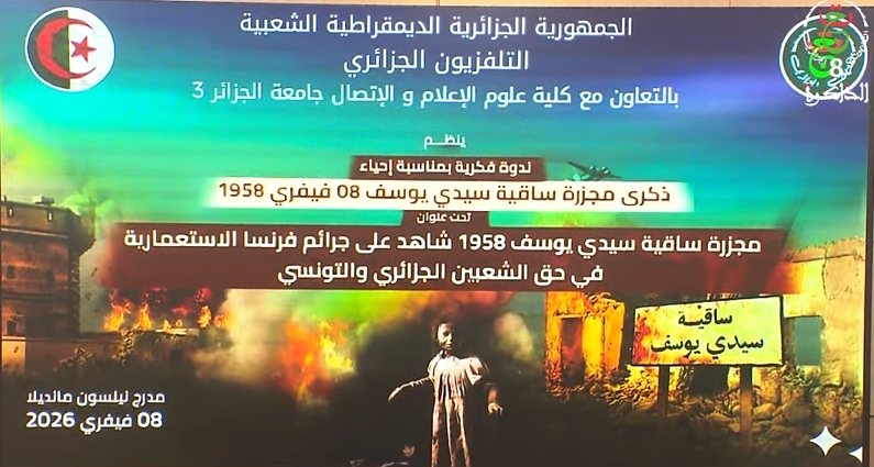 موسومة بـــ مجزرة ساقية سيدى يوسف 1958 شاهد على جرائم فرنسا الاستعمارية قي حق الشعبين الجزائري و التونسي.